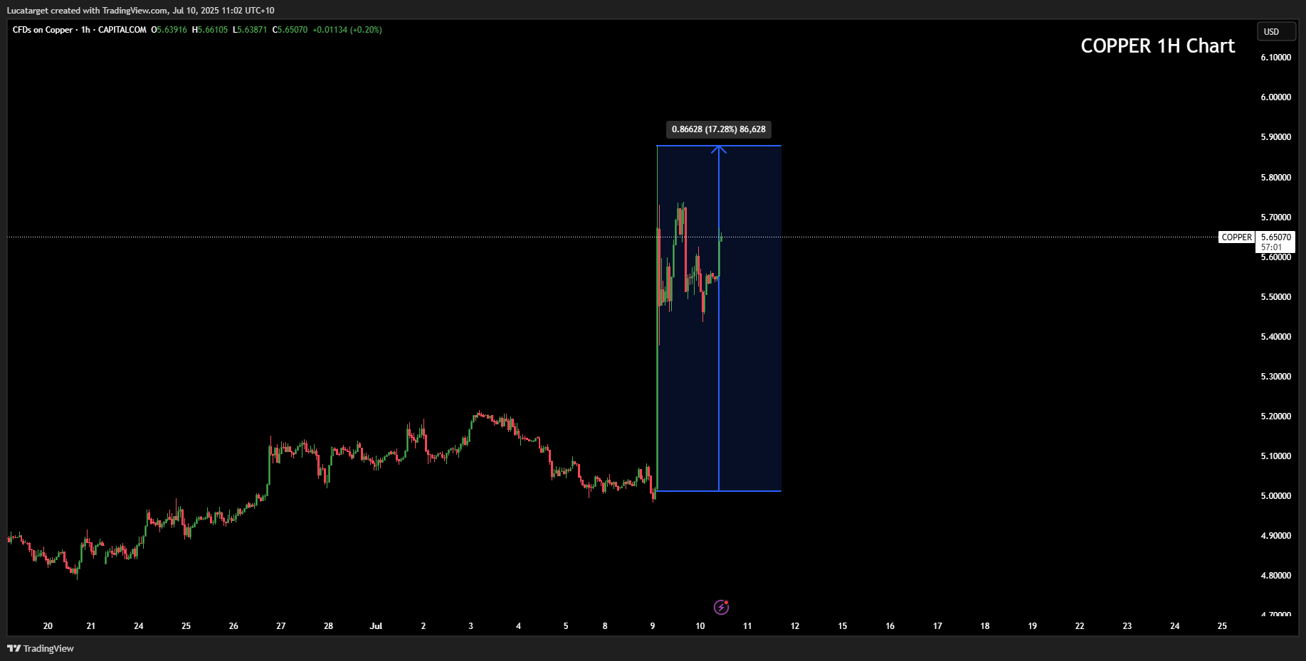 On Tuesday, copper futures surged over 13%, marking a record one-day gain following Trump's announcement of a proposed 50% tariff on imported copper.