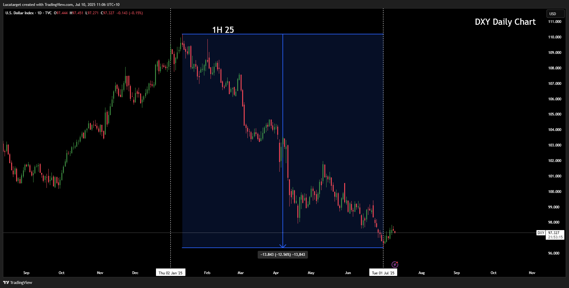 A: While the dollar has already suffered its worst H1 on record (-10.7%), a new wave of inflation risk could prompt additional downside, especially if it triggers Fed hesitation or global investors question the direction of U.S. policy. However, any panic reaction would depend on the scale and enforcement of the new tariffs.